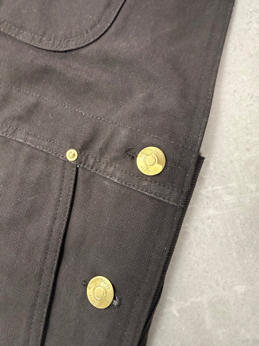 Toutes nos salopettes sont neuves et jamais portées. Certaines pièces Canvas peuvent présenter une légère patine sur les boutons ou rivets due au stockage. Ces marques restent purement esthétiques et n’affectent ni la solidité ni la durée de vie.